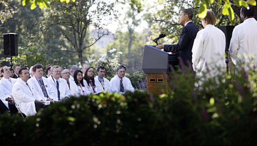 The White House told Alice to secretly bring Doctors from every state for a Rose Garden ceremony where they would stand united advocating for the ACA. “We need them to fly themselves in to DC. There's no budget for this. And nobody can know about it because if the press gets wind of it, we're calling the whole thing off.”