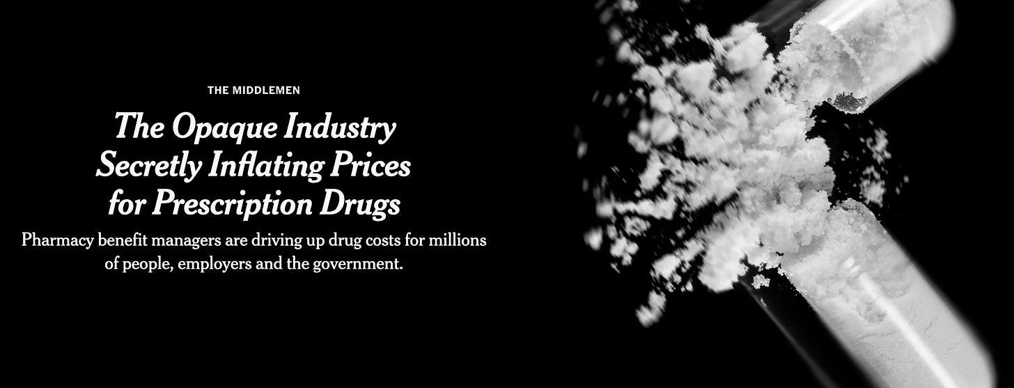 On the day we had this conversation, the NYtimes published quite the expose on PBMs (pharmacy benefit managers). Read it, it will drive you crazy, hopefully in a motivated way. There’s a reason these third parties don’t exist in most other countries around the world.
